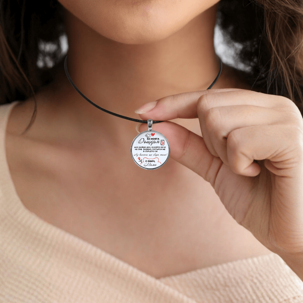 Ръчно изработен медальон с твоето послание – за да останеш в сърцето ѝ, дори когато не си до нея